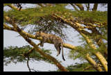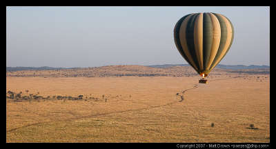 may not be something you want to do, but the views are spectacular. After the balloon ride and the breakfast in the savannah, we're out for another game drive. A traffic jam of trucks circling around a tree forms when a leopard in a tree is spotted, later a similar thing happens when a pair of lions is found. Included below is a picture of some of the traffic.