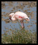nice views of the wide open space of the park. The crater is mostly grasslands with almost no trees giving you a long view, but it also shows you how the natural camouflage works on the animals when they are in the grass. Part of the crater is the marshy area that is filled with birds of all types and wildebeest come to get water. The pink flamingos are everywhere. We stopped to watch them.